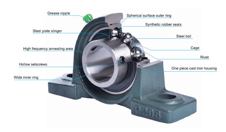 Unit-unit ini merupakan kombinasi bantalan bola radial, segel dan wadah dari besi cor bermutu tinggi atau baja tekan yang tersedia dalam berbagai bentuk. Permukaan luar dari bantalan yang cocok dan permukaan bagian dalam rumahan berbentuk bulat sehingga unit dapat menyelaraskan diri.